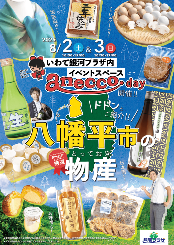 いわて銀河プラザを応援するボランティア団体「anecco.」主催の人気イベント!今回は八幡平市の商品を販売します。